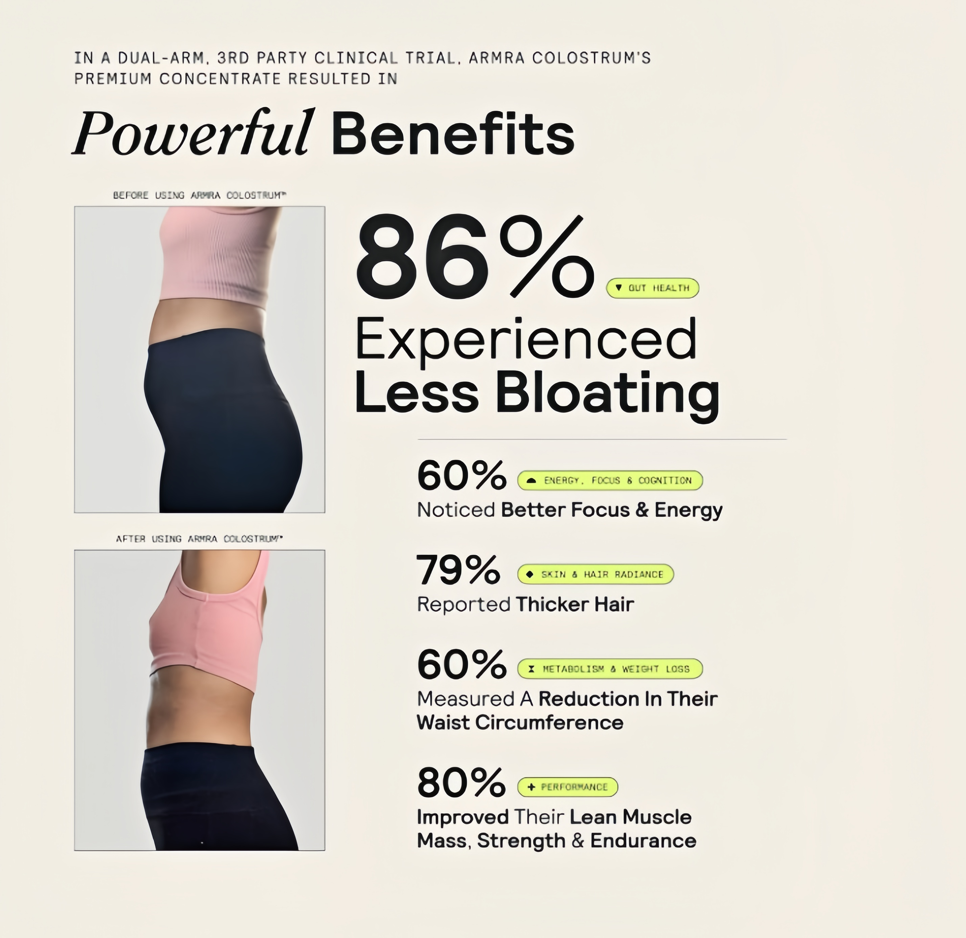 ARMRA Colostrum®DELIVERS NOTICEABLE HEALTH BENEFITS IN DUAL-ARM, CLINICAL RESEARCH.